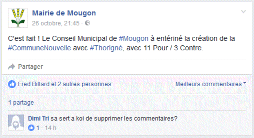 c'est moi qui gère la page Facebook de la Mairie de Mougon, voici
